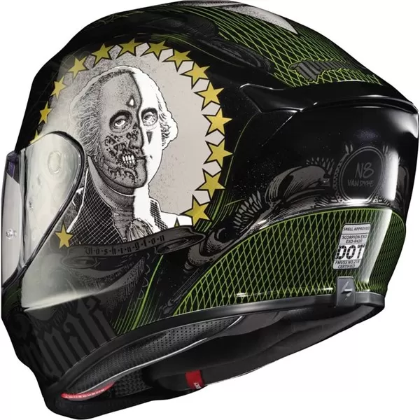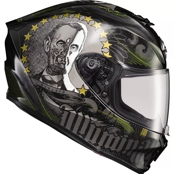 The EXO-R420 helmet continues to set a new standard for Scorpion EXO’s full face street helmets. State of the art materials, performance features, sleek modern design, refined fit, and a dual safety homologation at a very competitive price point. The advanced polycarbonate shell is more aerodynamic and smaller resulting in an ultra lightweight SNELL approved helmet. The aero tuned ventilation system uses a large top vent and mouth vents engineered to allow more airflow to the riders head while maintaining low noise levels. The EXO-R420 features an Ellip-tec II face shield with a latching shield locking mechanism located in the lower center of the shield. This makes the face shield more secure and provides a tighter seal against the gasket. The face shield can easily be removed without tools, and the EverClear No Fog coating helps keep your vision clear in cold and damp environmental conditions. The KwikWick II comfort liner is moisture wicking, quick drying and can be easily removed and is machine washable.