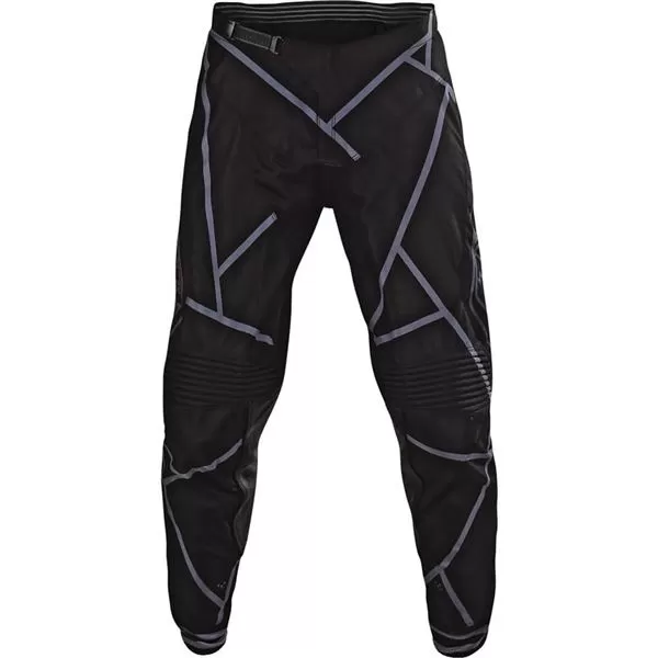 The metric pants are primarily made from 900 denier polyester with cowhide leather panels on the inner knee for extra protection. Two-way stretch panels are featured on the rear knee, calf, and crotch for enhanced mobility. A ratchet waist closure and sliding rear yoke system provide a secure fit.